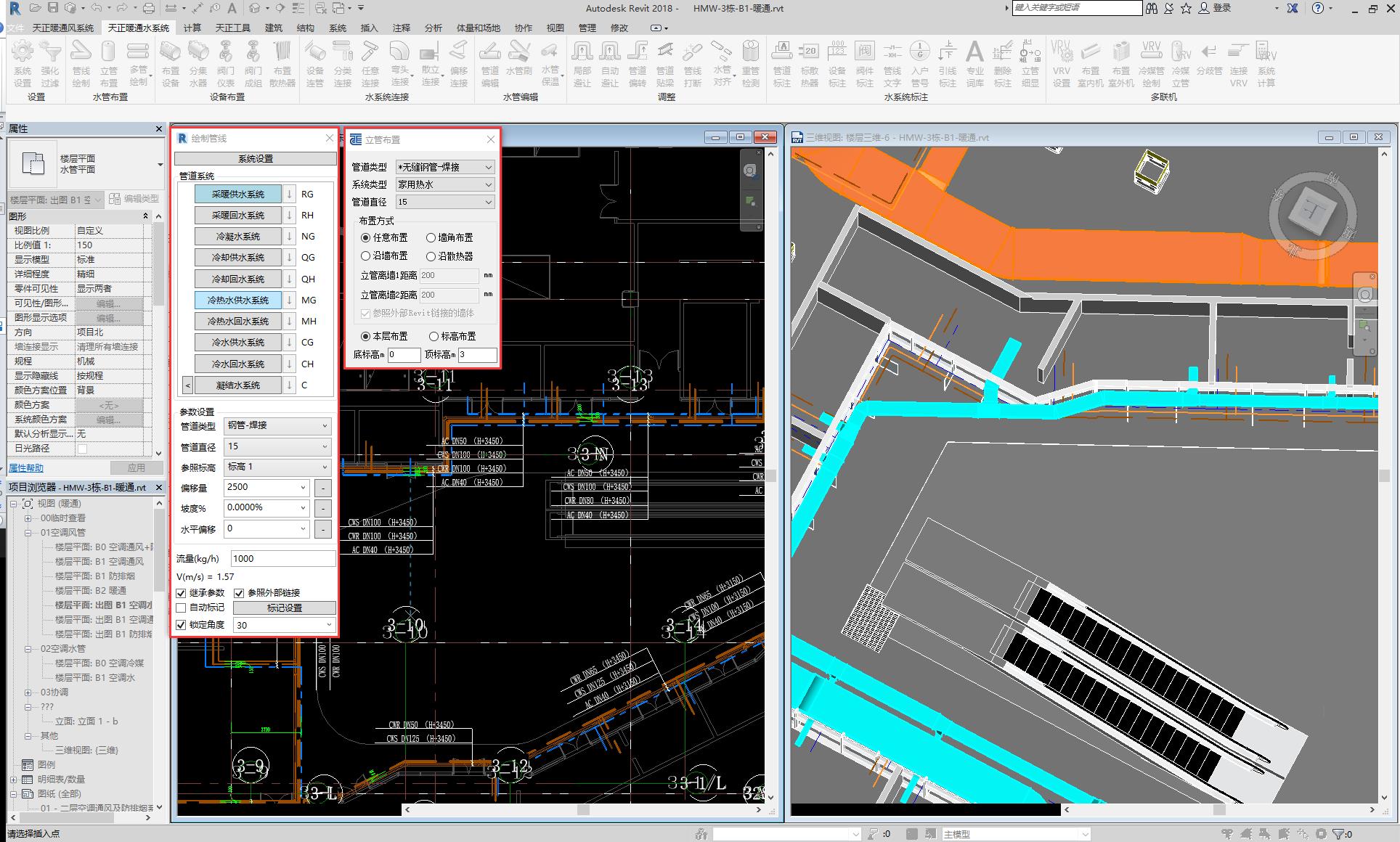 提供單根水管管線、水管立管的布置,同時(shí)提供多管同時(shí)繪制以及平行管道和沿墻布管等方式。