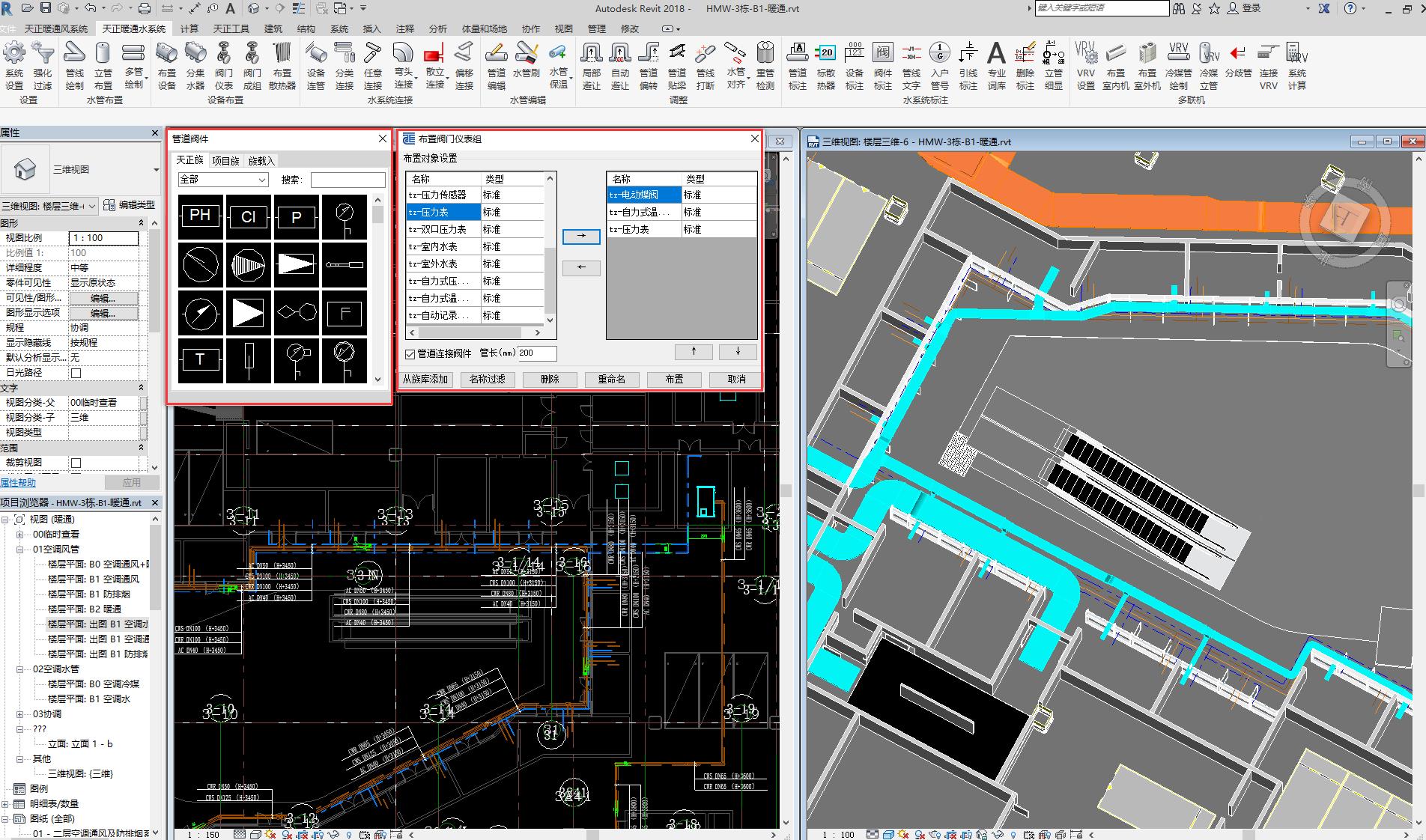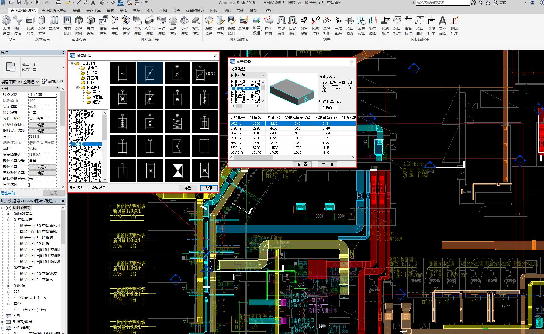 提供風(fēng)口、風(fēng)閥、風(fēng)機(jī)盤(pán)管、風(fēng)機(jī)等設(shè)備庫(kù),支持設(shè)備的選型、布置,支持支吊架的布置。