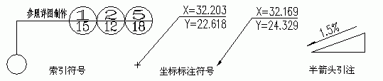 索引圓圈內(nèi)的文字支持出圈顯示,圈內(nèi)文字與線上標(biāo)注文字可以采用不同的文字樣式。按制圖規(guī)范要求增加對在延長線上標(biāo)注文字、多剖切位置線以及引線雙轉(zhuǎn)折點的支持。