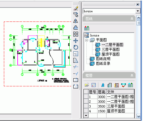 系統(tǒng)允許用戶使用一個DWG文件保存多個樓層平面,也可以每個樓層平面分別保存一個DWG文件,甚至可以兩者混合使用。