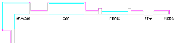 角凸窗:轉(zhuǎn)角窗和角凸窗統(tǒng)一為一個參數(shù)化窗對象,側(cè)面可以碰墻,自動完成側(cè)面的遮擋處理。