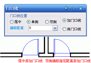 9) 全新的“門口線”命令,添加或刪除門口線的操作均可批量完成,支持居中繪制及按指定偏移距離繪制門口線。