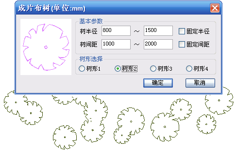 8) 新增總圖專業(yè)的“成片布樹”和“任意布樹”功能。