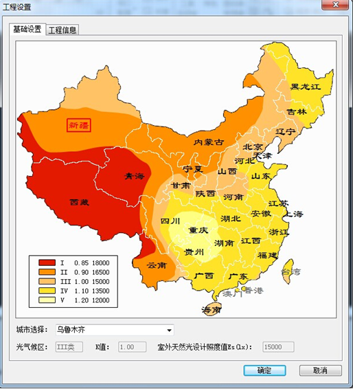 工程設置可對城市、光氣候區、建筑類型等進行設置