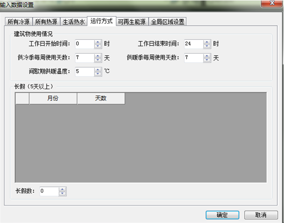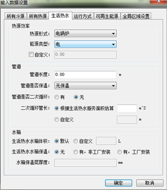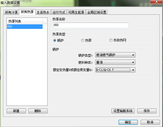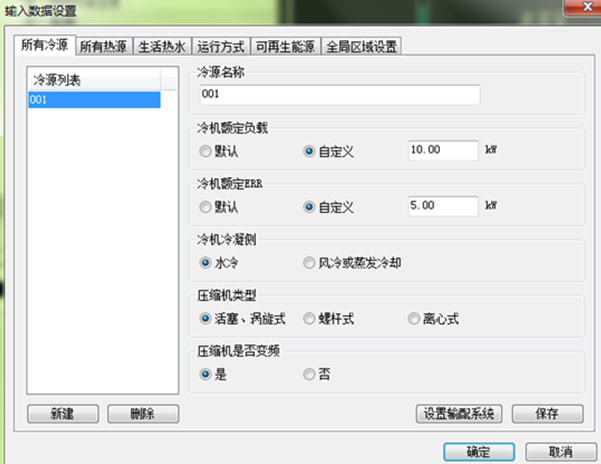 包括:冷源、熱源、生活熱水、運(yùn)行方式、可再生能源和全局區(qū)域設(shè)置