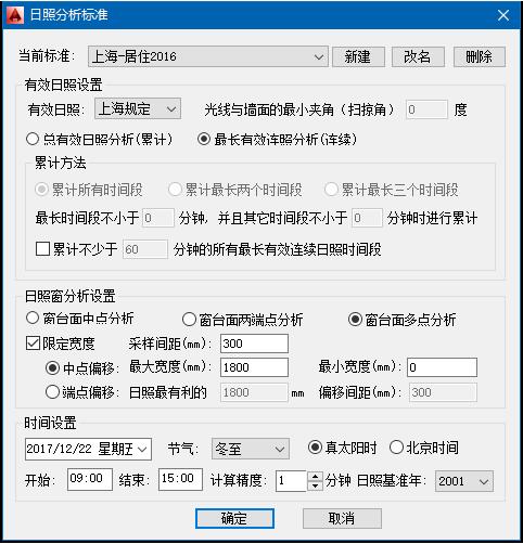包含窗臺面中點分析、窗臺面兩端點分析、窗臺面多點分析三種窗戶采樣的分析方法,并且支持最新的日照基準(zhǔn)年。