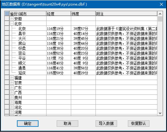 T20-Sun中提供全國各城市的經(jīng)緯度數(shù)據(jù)作為參考,并且可以進(jìn)行城市的添加編輯和修改,以符合當(dāng)?shù)厝照沼嬎阋蟆?br />