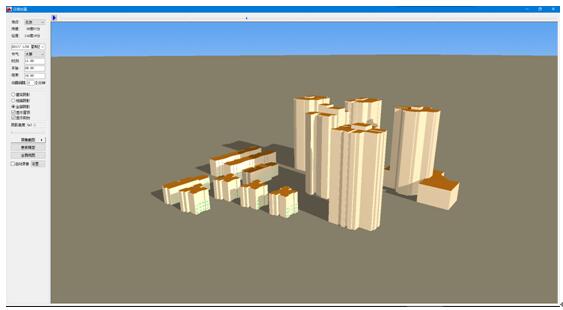 動態(tài)改變被測試建筑物或者遮擋主體建筑物的位置和方位,實時顯示客體建筑物輪廓上采樣點或窗戶的日照時數(shù)。可動態(tài)修改建筑高度或者拉伸輪廓形狀,動態(tài)觀察建筑形體變化對日照時數(shù)的影響。