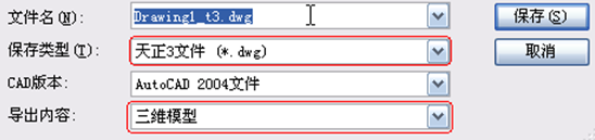 原因是天正建筑自己創建了新的對象類型(墻、門窗等)。為了使得其他軟件能夠使用天正建筑創建的模型,在整圖導出時,需要保存類型為天正3文件,導出的內容為“三維模型”,如下圖所示。或者在三維組合時選擇把天正對象分解為面模型或實體模型。