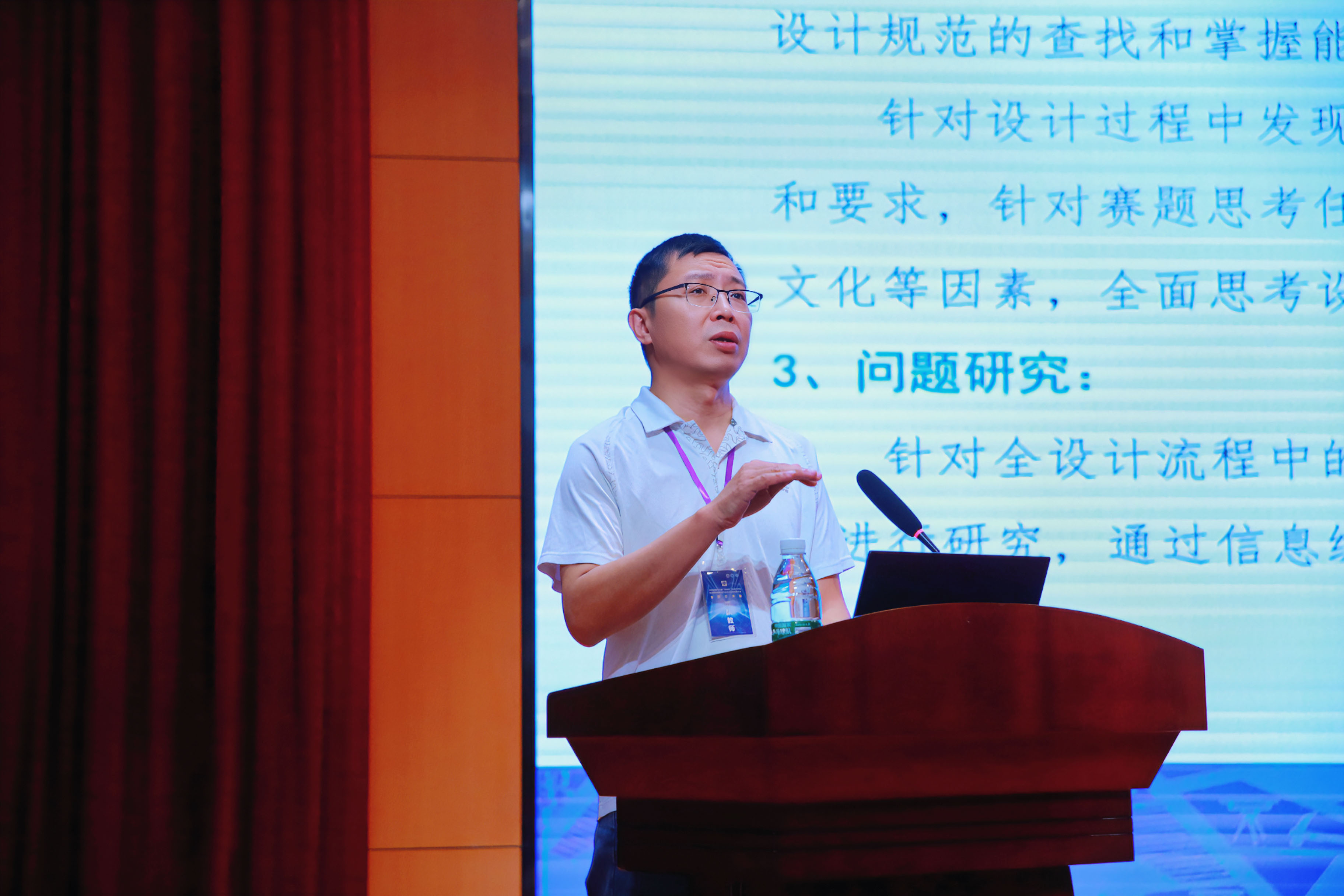 安徽工業大學周天旭老師做了“工大實踐,賽訓融合,探索“新工匠”建筑制圖教育體系”的主題報告,他從實踐出發,介紹了如何將比賽和培訓相結合,從制度建設、團隊分工、人才梯隊培養等方面介紹了安徽工業大學的學科競賽經驗。