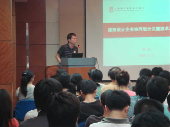 在孫副秘書長熱情洋溢的致辭后,成功應用天正建筑TArch8.0/TS4.0單位專版的上海現代建筑設計(集團)有限公司的代表——集團信息中心的蘇駿工程師,做了題為“建筑設計企業協同設計關鍵技術與應用”的報告,與參會的設計師們分享了上海現代集團在協同設計推廣過程中,充分應用天正建筑軟件,在不改變現有工作習慣的情況下逐步推廣協同設計方式的心得體會,給大家提供了很好的借鑒經驗。