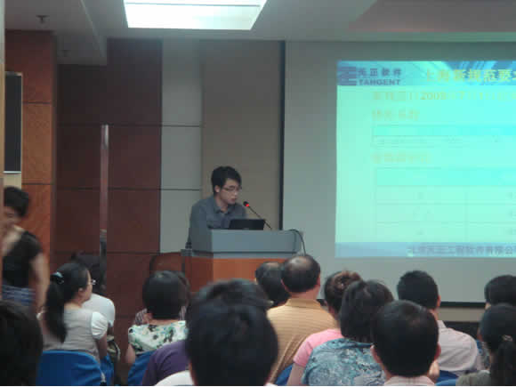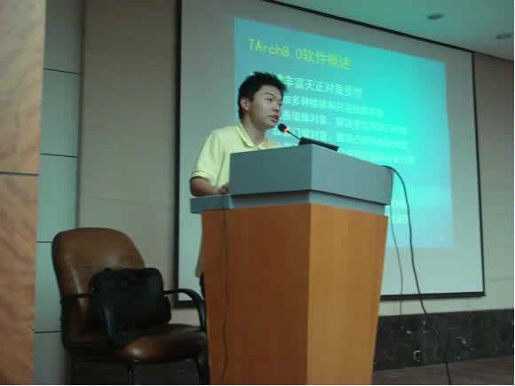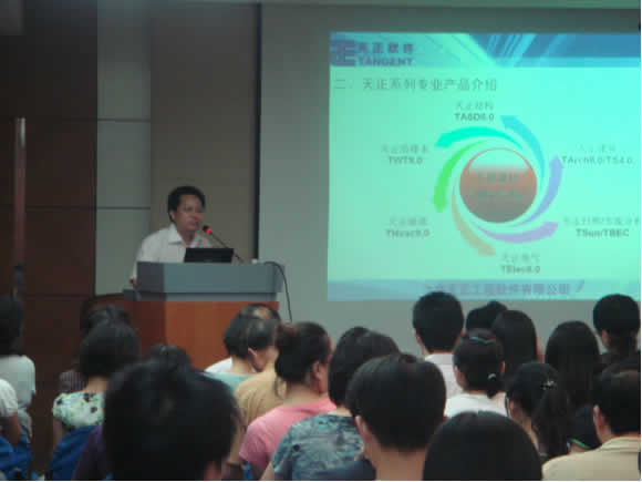 在協會領導、設計單位一線信息建設主管的報告后,天正公司的代表給大家進行了新版本的演示。通過天正公司資深工程師——張翔工程師的演示,與會的建筑工程師被天正建筑TArch8.0/TS4.0新版本更人性化的設置、新穎的樓梯設計、配合房產面積統計研發的面積統計等新功能、新技術所深深吸引。
