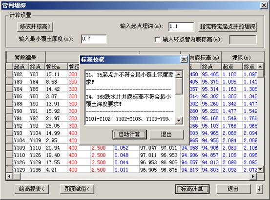 2)新增【管網(wǎng)埋深】功能,可對室外管網(wǎng)系統(tǒng)進行管網(wǎng)埋深計算可已知管網(wǎng)起點埋深計算管網(wǎng)排出點標高或已知排出點標高反算起點埋深,僅需一步操作即可計算整個管網(wǎng)的標高信息。減輕了大量的工作量。