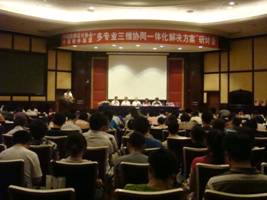 2011年7月12日,繼“北京站”、“武漢站”后,由中國勘察設計協會、中國軟件聯盟、天正公司共同舉辦 “多專業三維協同一體化解決方案”系列研討會登陸津門天津,再次掀起天正多專業三維協同一體化應用熱潮。中國勘察設計協會、天津市勘察設計行業協會、中國軟件聯盟相關領導及天津市勘察設計行業的眾多專家、學者、工程師們齊聚一堂,共同交流在建筑工程設計方面的先進技術和經驗,到場嘉賓共計200余人,現場座無虛席,會議氣氛非常熱烈。天正公司首次將盛況在新浪天正軟件官方微博(http://weibo.com/tangentsoft)進行了現場直播。