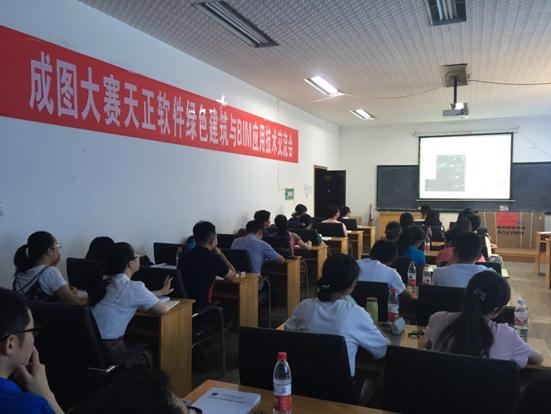 7月20日,作為本次大賽的配套活動,由中國圖學學會制圖技術專業委員會和北京天正軟件股份有限公司舉辦的“成圖大賽天正軟件綠色建筑與BIM技術應用技術交流會”率先舉辦,本次大賽的承辦方蘭州交通大學提供場地及人員支持。來自全國20余家參賽院校的五十余名教師參與了本次交流會,交流會由天正軟件公司高級技術工程師李超主講。李工重點介紹了天正軟件在BIM應用方面的研究成果,演示了天正基于Revit平臺開發的建筑、給排水、暖通、電氣等TR系列軟件,并對基于CAD的T20天正軟件及基于Revit的TR天正軟件如何實現數據互通進行了詳細演示。天正軟件公司提出的“融合CAD與BIM設計,開創設計階段BIM應用新模式”的雙平臺設計理念獲得了參會老師的極大認可。